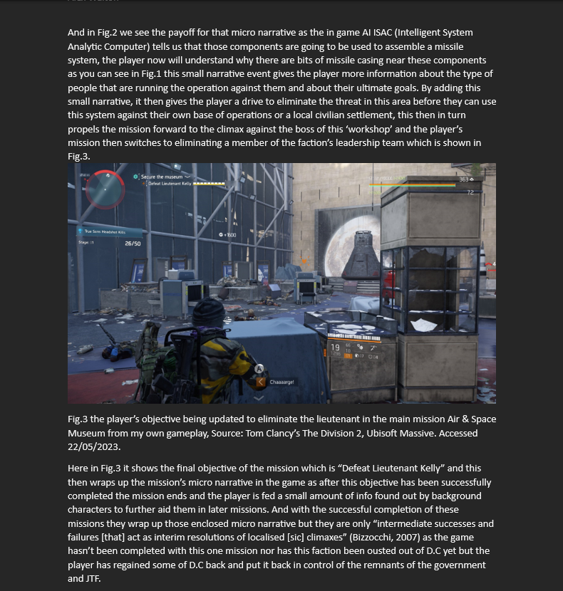 This is my analysis of the micro narratives, environmental storytelling and the lighting and colours used within the world of the division and how they add to the main narrative hooks that are told through the characters you encounter.